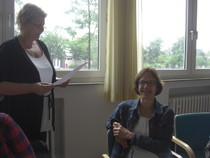 Frau Elsmann(stehend)übergibt die komm.Schulleitung an Frau Schwickert.