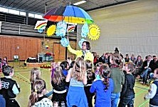 Die Grundschule Blumensiedlung hatte am Freitagvormittag etwas zu feiern. Grund: Deren seit Sommer 2012 kommissarisch tätige Leiterin Dorothea Schwickert wurde während eines Festaktes in der Turnhalle der Europaschule offiziell in ihr Amt als neue Leiterin eingeführt. Während des von der Schülerschaft fröhlich-bunt gestalteten Festaktes überreichte Frank Andreas, Schulfachlicher Dezernent der Niedersächsischen Schulbehörde, die offizielle Ernennungsurkunde und „Goldbarren“ aus Schokolade, die ein „Dreikäsehoch“ sofort stibitzte.