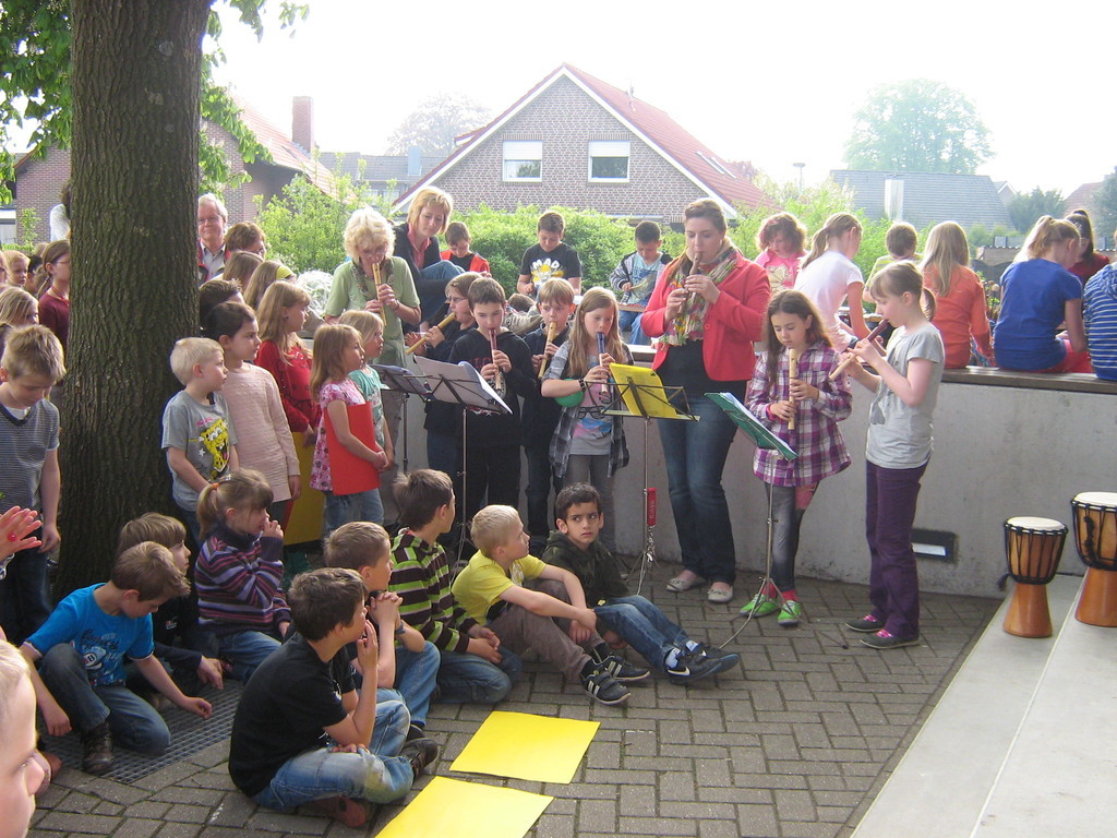 Dort werden alle Klassen etwas zu unserer Feier beitragen. Sogar Kinder der zweiten Klassen, die gerade erst mit dem Flötenspielen begonnen haben, werden eine bekannte Melodie spielen.