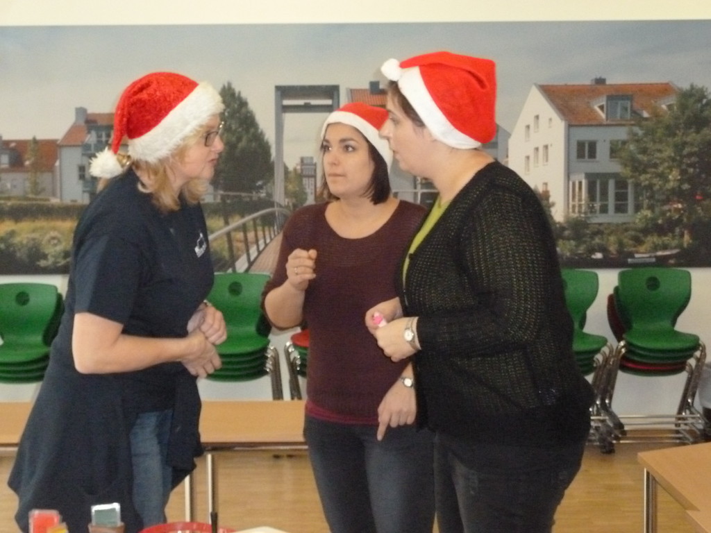 Vielen Dank allen Helferinnen, die Teig und Kaffee gespendet, Waffeln gebacken, Kaffee gekocht, die Tische vorbereitet und alles wieder weggeräumt und gespült haben. Ganz großen Dank den Kolleginnen, die sich Nikolausmützen aufgesetzt und das Knobeln moderiert haben: Ihr habt das toll gemacht!