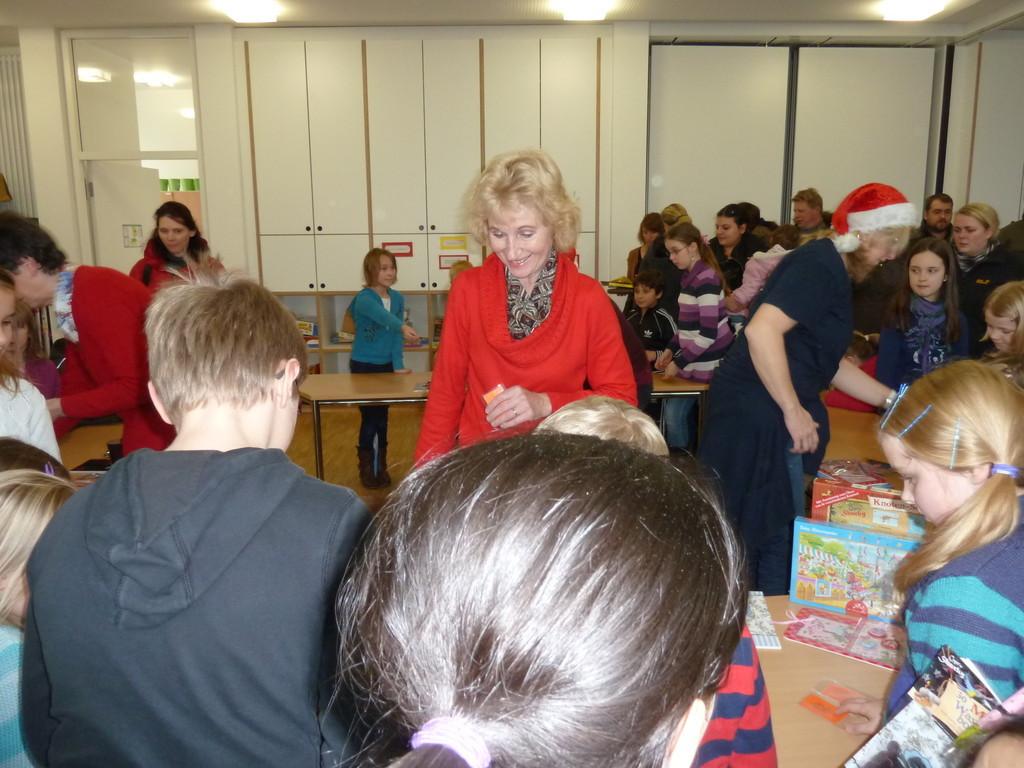 Frau Schwickert wurde am 8,3.2013 Schulleiterin. Sie hat gesagt, wir haben das toll gemacht . Haben 3 Lieder für sie gesungen, 2 auf Deutsch und 1 auf Niederländisch. Ihre Tochter war so nett und hatte die Idee, dass jedes Kind einen Kuchen am Stiel bekommen könnte. Aber am schönsten war der Frühsport. Das war der allererste Tanz und er hieß „Hangover.“ Danach hatte die 4b 2 Theaterstücke vorbereitet. Eins handelte von Frau Schwickert und das zweite von der Schule. Danach wurden die Kinder ungeduldig, weil so viele Reden noch kamen und Geschenke. Bei einem Geschenk war es voll lustig: da ist der Enkel von Frau Schwickert gekommen und hat das Geschenk von dem Schulrat genommen und da drin war Schokolade.