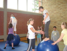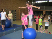Balllauf ist, wie man am Wort schon hört, zu lernen, auf einem Ball zu laufen. Der Ball darf nicht zu klein sein – also nicht so klein wie ein Fußball. Er muss einem mindestens bis zur Hüfte gehen. Man klettert auf den Ball. Eigentlich hüpft man auf den Ball und versucht, das Gleichgewicht zu halten. Wenn man gut stehen kann, kann man versuchen sich zu drehen. Wenn man das auch gut schafft, kann man versuchen, von einem Ball zu einem anderen Ball zu hüpfen. Wenn man auch das gut kann, kann man versuchen mit dem Ball zu laufen. Aber Achtung: Wenn man nach vorne läuft, geht der Ball zurück. Wenn man zurückläuft, rollt der Ball vorwärts.